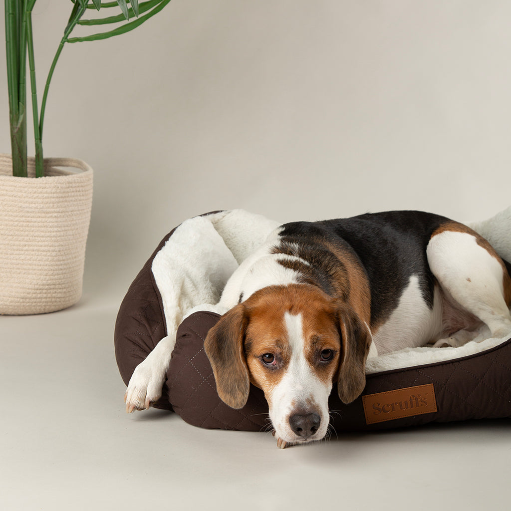 Imagine your dog sinking into the cloud-like softness of the plush faux fur, surrounded by supportive raised sides that create a cosy, secure haven. The quilted exterior not only looks stunning but provides structure and durability, while the soft-feel Scruffs logo adds an authentic designer touch.