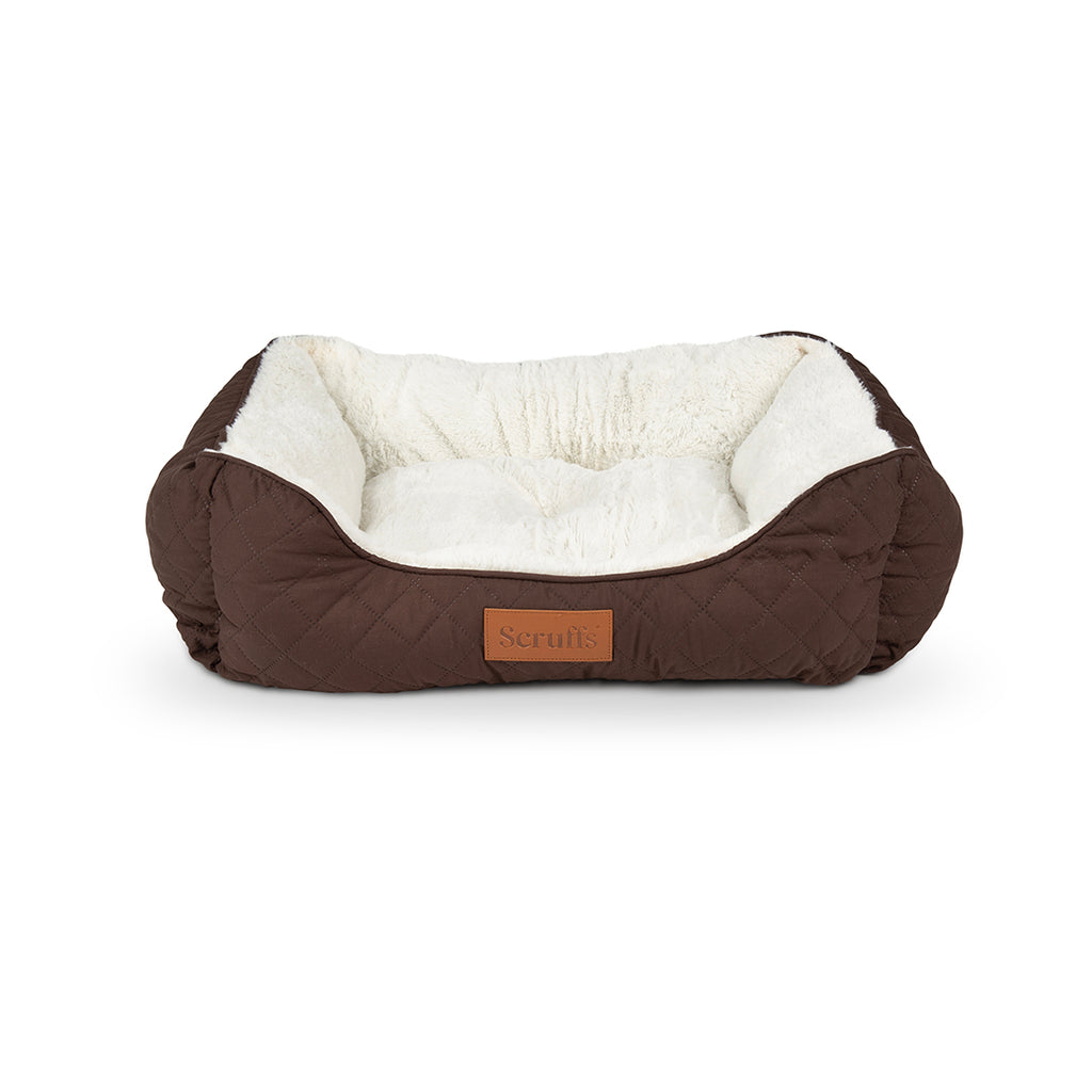 The Scruffs® Wilton Box Dog Bed in Chocolate combines sophisticated style with supreme comfort. Featuring a beautiful quilted diamond pattern outer fabric and a luxuriously plush faux fur sleep area, this bed transforms any space into a five-star retreat for your beloved pet.